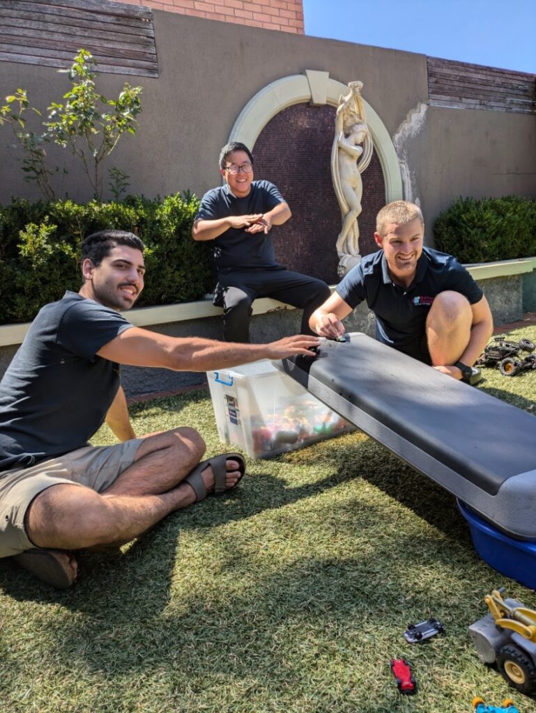 I have been having great success with support worker engagement in supporting SP and external MDT provider strategies for Key Word Sign/AAC modelling and emotional regulation – Having a fun time in the sun with my Autistic participant who absolutely loves water play and race cars!